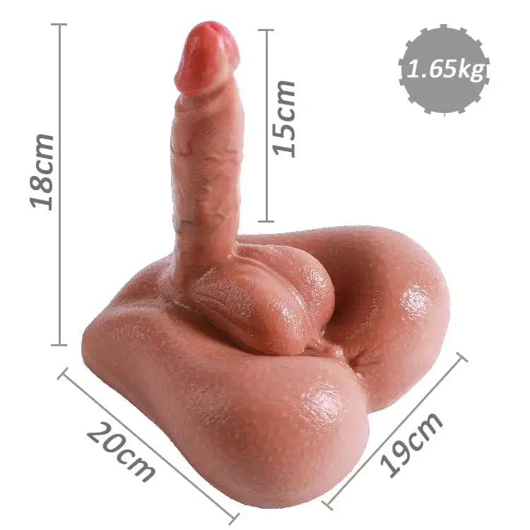 Der Körper ist sehr stabil durch sein Gewicht von 1,6 kg. Der Durchmesser des Penis beträgt ca. Ø 4cm und die Länge ca. 15cm.