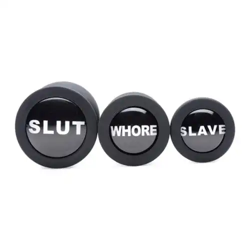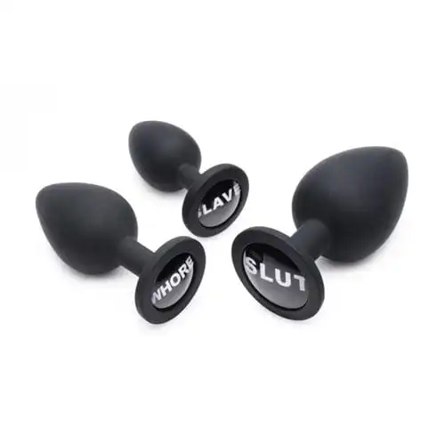 Das Dirty Words Anal Plug Set enthält 3 verschiedene Größen von Analplugs aus Premium-Silikon! Die spitz zulaufende Form und das glatte Material erleichtern das Einführen, während der schmale Stiel ein angenehmes Tragen über einen längeren Zeitraum ermöglicht. Das hochwertige Silikon ist poren- und phthalatfrei, jedoch nicht mit Gleitmittel auf Silikonbasis kompatibel. Mit einer milden Seife und Toy-Reiniger reinigen.