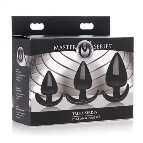 Triple Spades ist ein dreiteiliges Analplug-Set mit Stöpseln in verschiedenen Größen. Beginnen Sie mit dem kleinsten Stöpsel und arbeiten Sie sich langsam bis zum größten Stecker vor. Die Analplugs haben eine spitz zulaufende Spitze zum einfachen Einführen. Reinigen Sie sie nach Gebrauch gründlich mit Wasser und Sexspielzeugreiniger.
